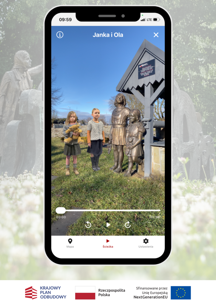 Projekt harmonijnie współgra z aranżacją ścieżki edukacyjnej. Każde stanowisko poświęcone jednemu z bohaterskich dzieci obejmuje rzeźbę, tablicę informacyjną oraz element rekreacyjny dla najmłodszych – m.in. zjeżdżalnię, huśtawkę czy ściankę wspinaczkową. Trójwymiarowe modele postaci widoczne w aplikacji stanowią cyfrowe odwzorowanie rzeźb znajdujących się przy poszczególnych stanowiskach, dzięki czemu warstwa wirtualna pozostaje w bezpośrednim dialogu z materialną formą upamiętnienia. Dzięki temu przestrzeń łączy refleksję historyczną z otwartą, przyjazną formą przekazu.