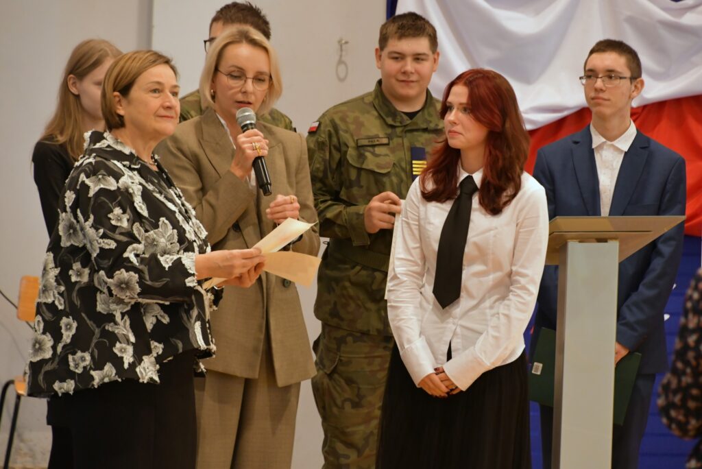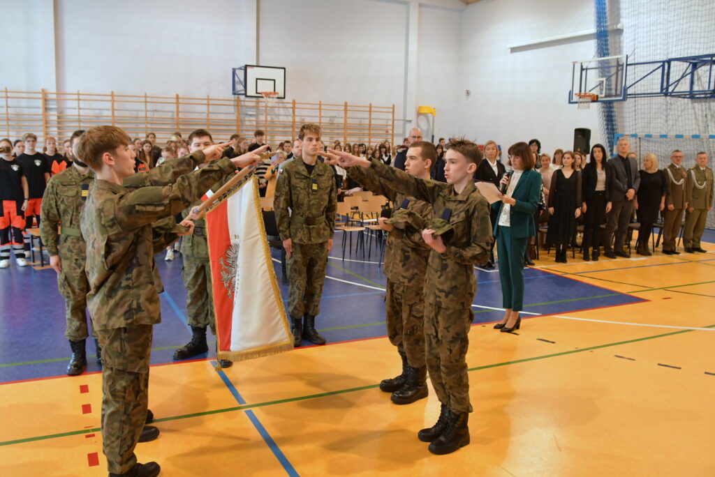 – To dzień, w którym z radością wspominamy odzyskanie przez Polskę wolności po 123 latach zaborów. Pamiętajmy, że niepodległość to nie tylko przywilej, ale także wspólna odpowiedzialność. Dzisiejszy dzień to także okazja, aby uczniowie klasy mundurowej złożyli uroczyste ślubowanie kadetów – powiedziała dyrektor szkoły.
