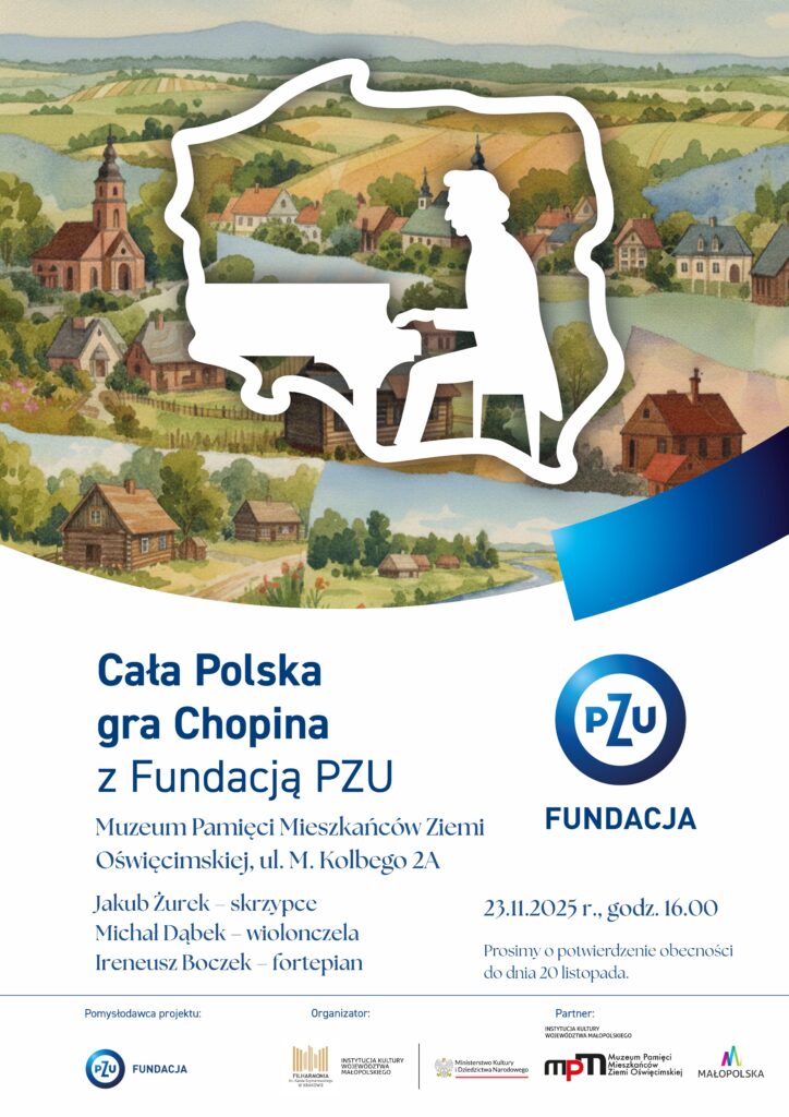 Wydarzenie odbędzie się 23 listopada 2025 r. o godz. 16.00 w siedzibie Muzeum. Na scenie wystąpią artyści Filharmonii im. Karola Szymanowskiego w Krakowie. Koncert realizowany jest przez Filharmonię Krakowską z inicjatywy Fundacji PZU, we współpracy z Muzeum Pamięci Mieszkańców Ziemi Oświęcimskiej, które jest partnerem przedsięwzięcia.