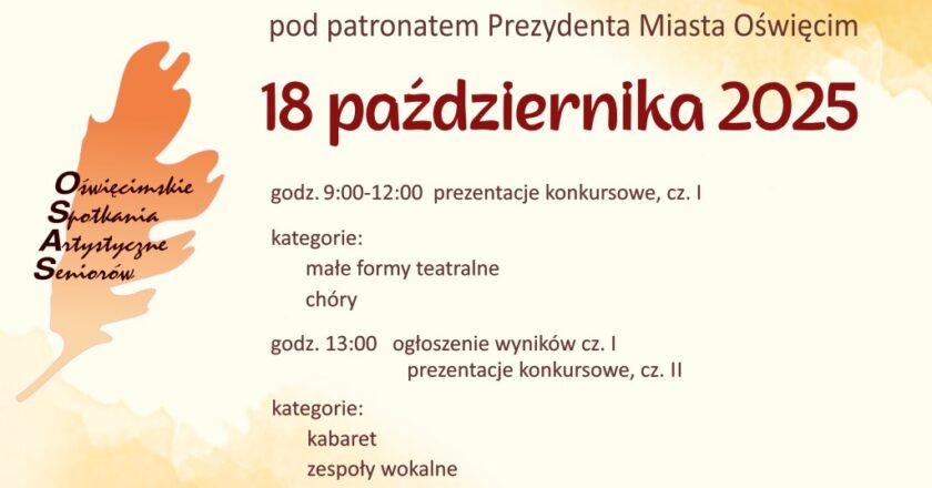 Pełny program jubileuszowych X Oświęcimskich Spotkań Artystycznych Seniorów w OCK. Zobacz, kto wystąpi, o której godzinie i w jakich kategoriach …