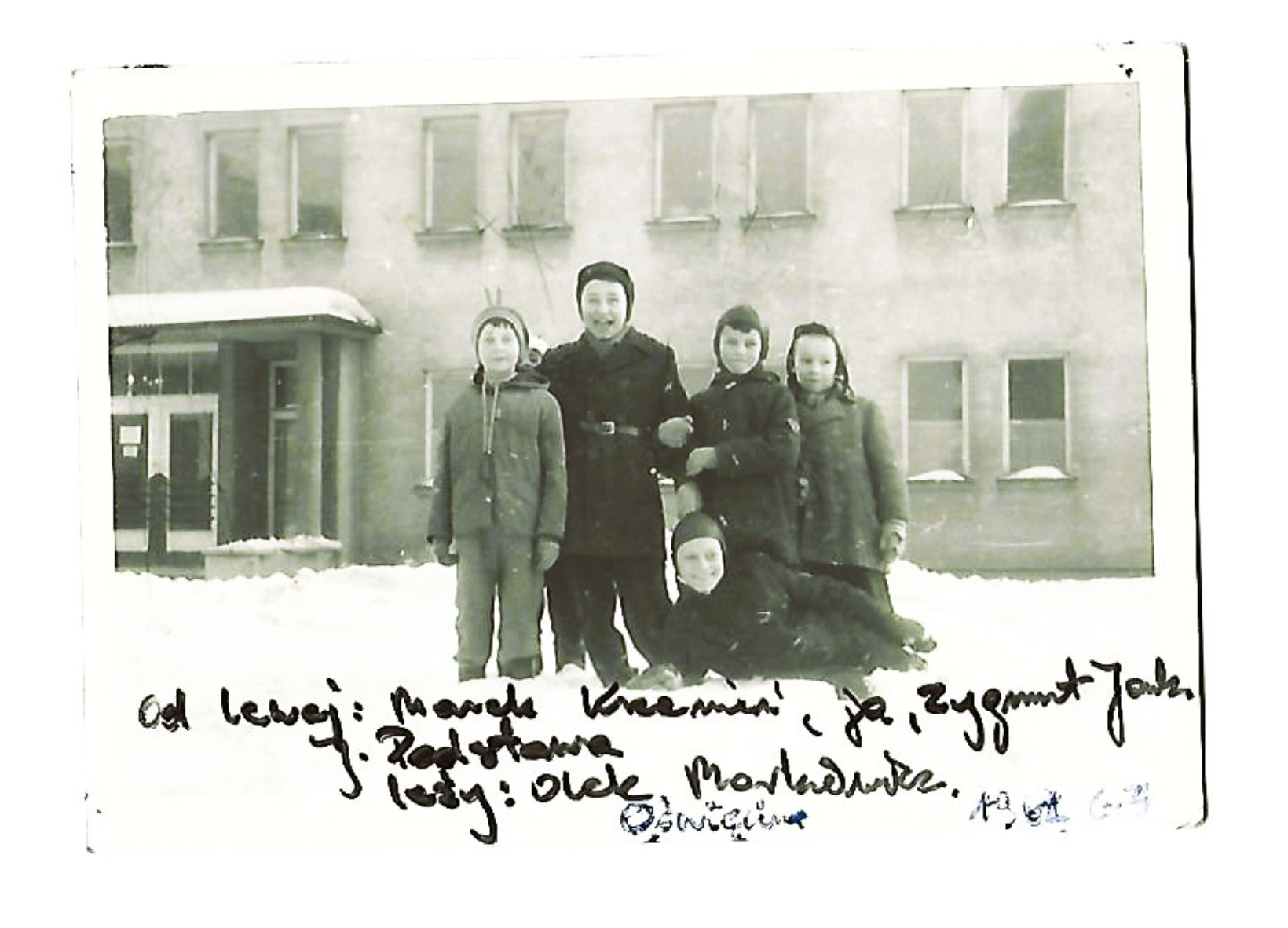 Jak pisze autor listu, była to zima bardzo śnieżna – podobna do tej, którą pamiętamy z dawnych lat. Dla dzieci oznaczało to mnóstwo radości i zabaw na śniegu. Jedną z takich chwil udało się uwiecznić na fotografii, która dziś ma ponad 60 lati stanowi cenny fragment lokalnej historii.