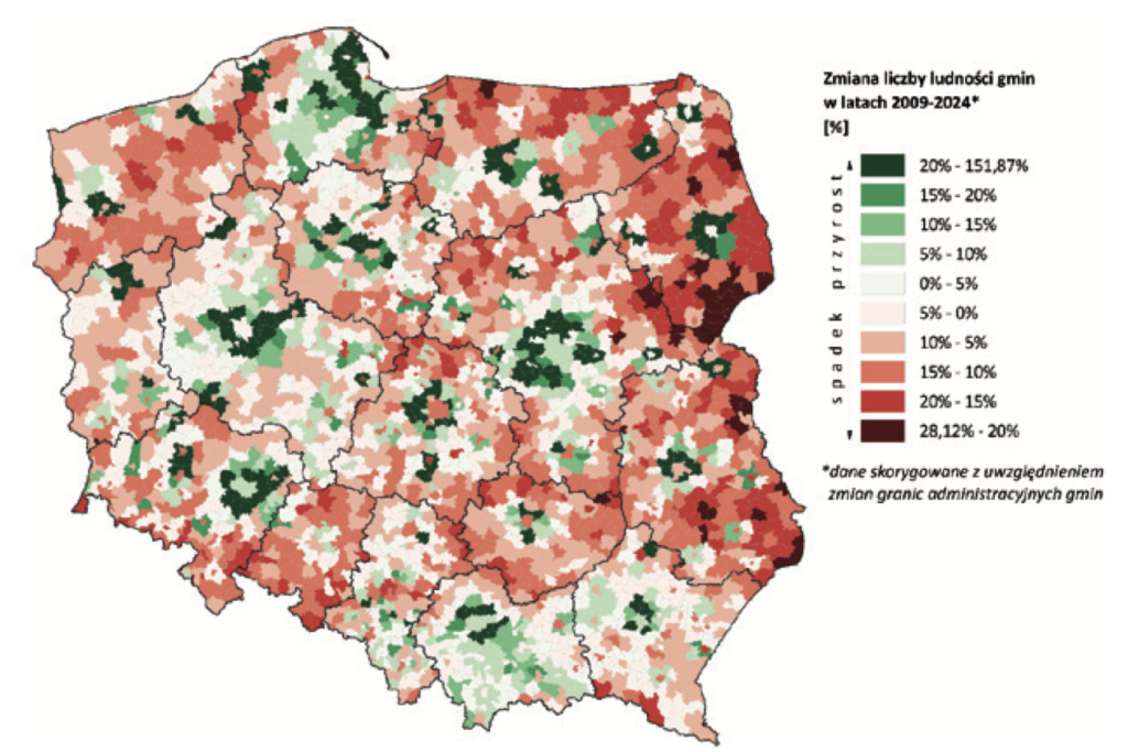 Polska kurczy się. Nie metaforycznie – dosłownie. Nowy raport demograficzny obejmujący lata 2009–2024 pokazuje, że setki polskich miast traci mieszkańców w tempie, które nie ma precedensu w powojennej historii kraju. Powiatu oświęcimskiego ten dramat dotyka w sposób szczególnie wyrazisty – i nikt nie może już dłużej udawać, że to chwilowe wahnięcie statystyk.