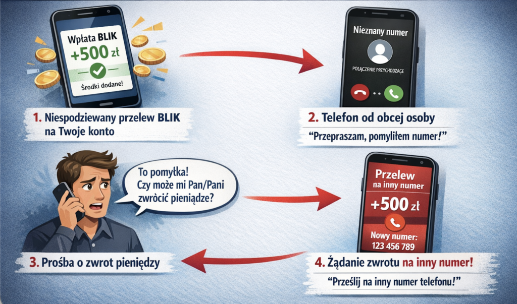 Nowy przekręt z BLIK w Polsce. Niespodziewany przelew i prośba o zwrot mogą zrobić z Ciebie nieświadomego pomocnika oszustów. Sprawdź, jak się chronić.