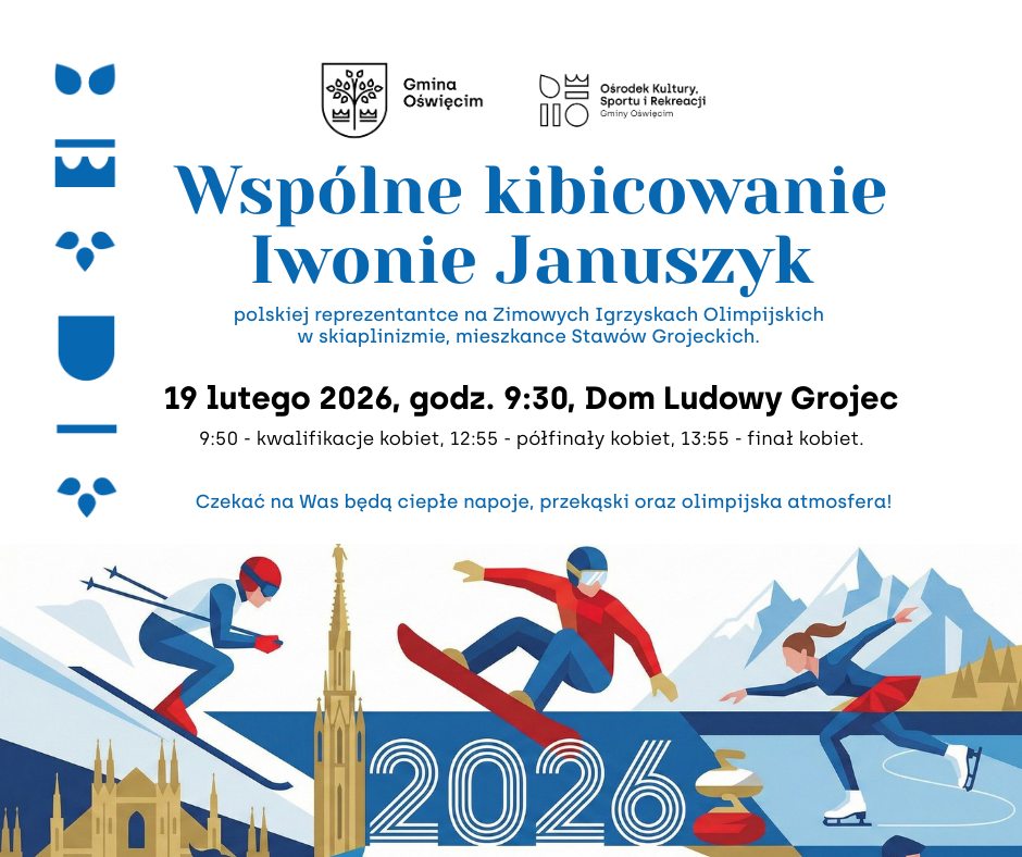 To będzie wyjątkowy dzień dla mieszkańców gminy Oświęcim. Już 19 lutego 2026 roku w Domu Ludowym w Grojcu odbędzie się wspólne kibicowanie Iwonie Januszyk – mieszkance Stawów Grojeckich i reprezentantce Polski, która bierze udział w Igrzyskach Olimpijskich.