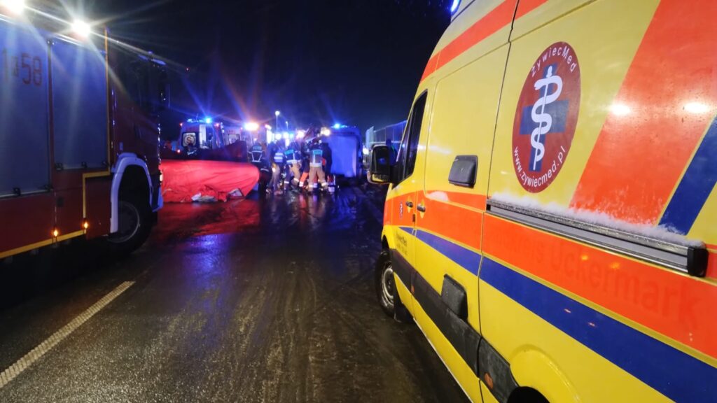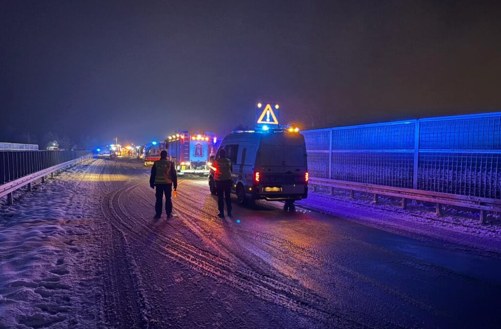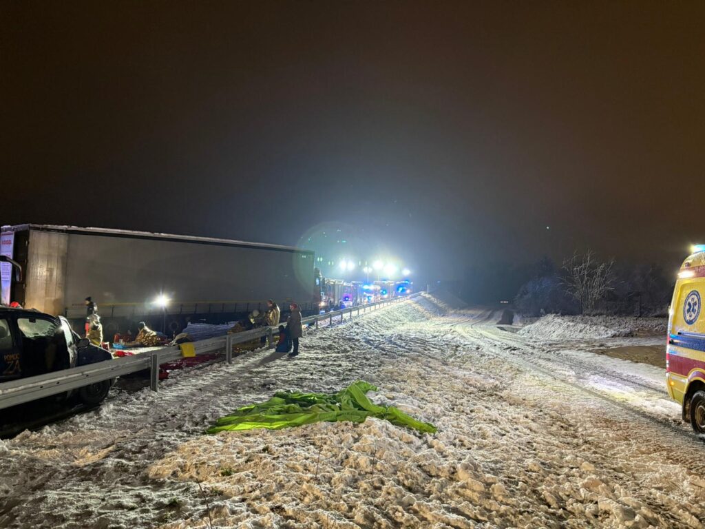 W środę (26.11.2025) na nieotwartym jeszcze odcinku nowej obwodnicy Oświęcimia, prowadzącej do drogi S1, przeprowadzono jedne z największych w Polsce ćwiczeń ratowniczych – MAYDAY 25. Realistyczny scenariusz zakładał katastrofę w ruchu lądowym z udziałem ponad 100 poszkodowanych. Całość rozgrywała się w wyjątkowo trudnych warunkach – przy intensywnych opadach śniegu i ograniczonej widoczności.