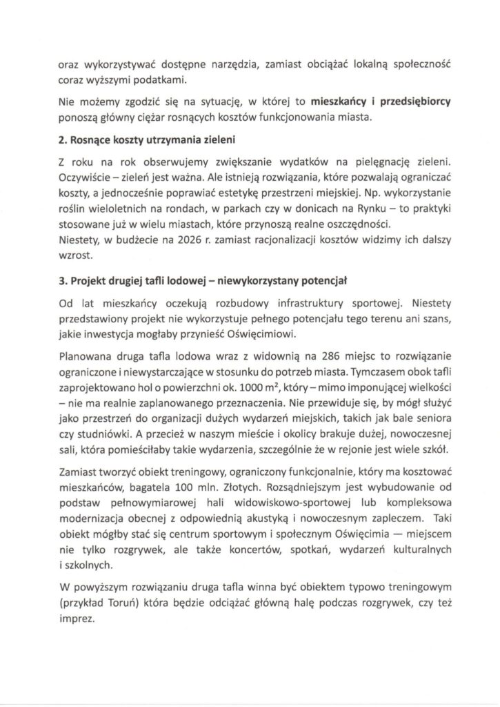 Budżet Oświęcimia na 2026 rok jest legalny, uchwalony zgodnie z procedurą i będzie realizowany. To fakt. Ale miasto nie rozwija się wyłącznie dzięki większości w głosowaniu. Rozwija się dzięki zaufaniu, dialogowi i poczuciu współodpowiedzialności.