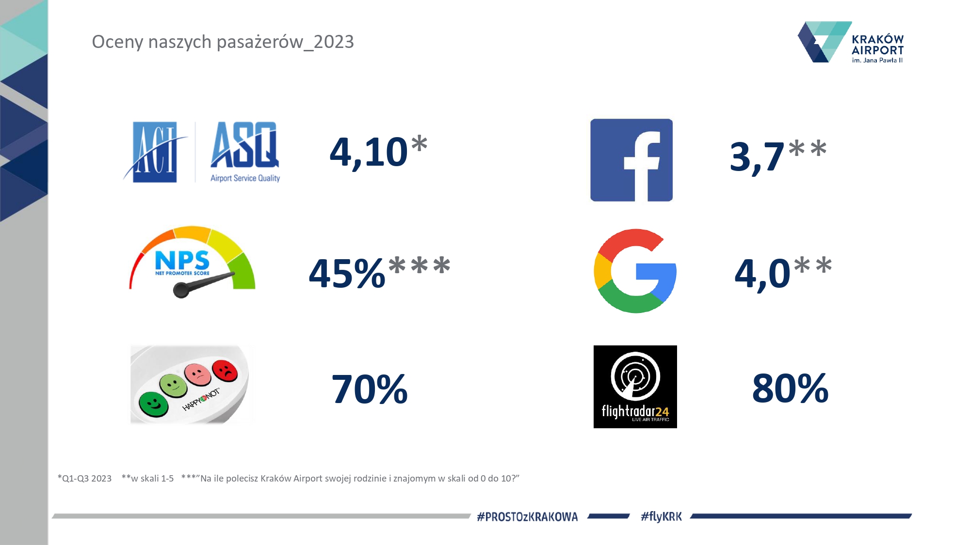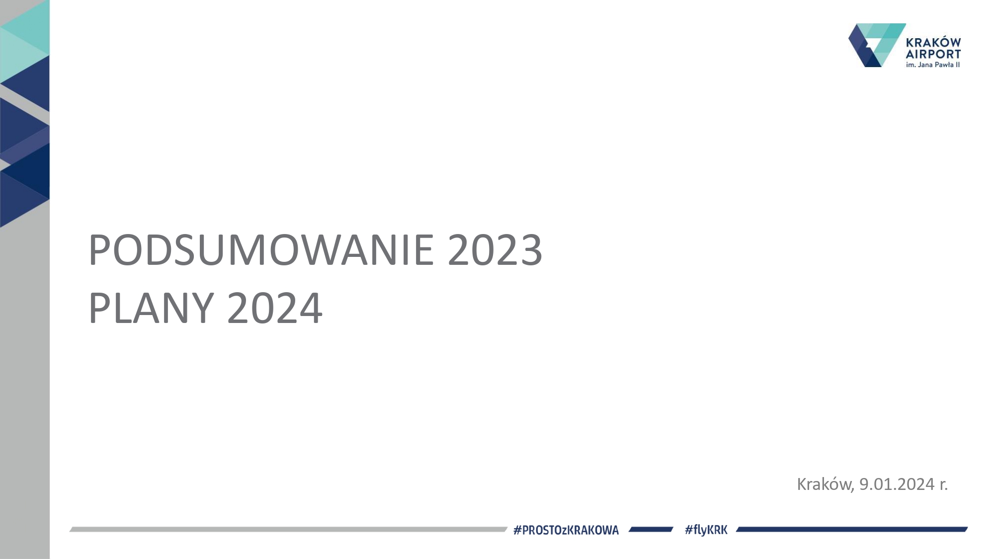 2023 to kolejny rekordowy rok dla krakowskiego lotniska tak pod względem ilości pasażerów, którzy skorzystali z naszych usług jak również pod względem biznesowym. Wzmożony ruch pasażerski oraz wytężona praca całej załogi lotniska przełożyła się na bardzo dobre wyniki finansowe Spółki i dalsze umocnienie pozycji Kraków Airport i spółek zależnych. Oceniamy rok 2023 jako bardzo udany dla lotniska. W kolejny etap rozwoju wprowadzamy Kraków Airport dobrze przygotowany i charakteryzujący się doskonałą kondycją finansową.