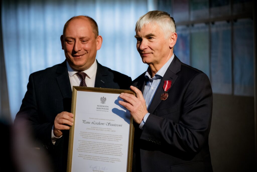 – Jest pewnego rodzaju wyzwaniem umiejętność tworzenia miejsca kultury w taki sposób, by nie tylko było źródłem poznania sztuki, ale także poprzez tę sztukę potrafiło edukować i przekazywać wartości. To zadanie wypełnił i przez kolejne lata sumiennie realizował Pan Leszek Szuster. Kierując Międzynarodowym Domem Spotkań Młodzieży w Oświęcimiu, stworzył miejsce żyjące dialogiem zarówno w dziedzinie sztuki, jak i pamięci historycznej, która jest nieodzownym elementem ziemi oświęcimskiej. Odznaczenie, które mam zaszczyt dzisiaj przekazać to wyraz docenienia Pana pracy na rzecz instytucji, którą przez lata Pan kierował. To także podziękowanie za okazywaną troskę w budowanie porozumienia, które nie zna granic – mówi wojewoda małopolski Krzysztof Jan Klęczar.