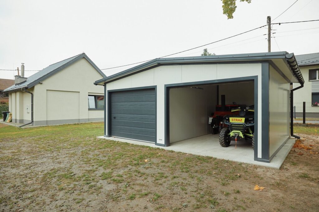 Drugą częścią przedsięwzięcia była budowa nowego garażu dla jednostki Ochotniczej Straży Pożarnej w Przecieszynie. Obiekt stanowi zaplecze bojowo-magazynowe i powstał dzięki dofinansowaniu z programu „Małopolskie OSP 2025”.