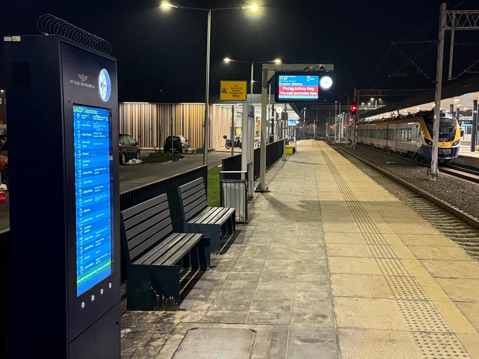 Nowe tablice i głośniki rozmieszczono na wszystkich peronach, w przejściu podziemnym oraz w holu głównym. Dzięki temu informacje są spójne, czytelne i dostępne z każdego miejsca stacji. Oświęcim dołącza do grona nowoczesnych węzłów kolejowych, oferując standard, jaki do tej pory był zarezerwowany dla największych miast.
