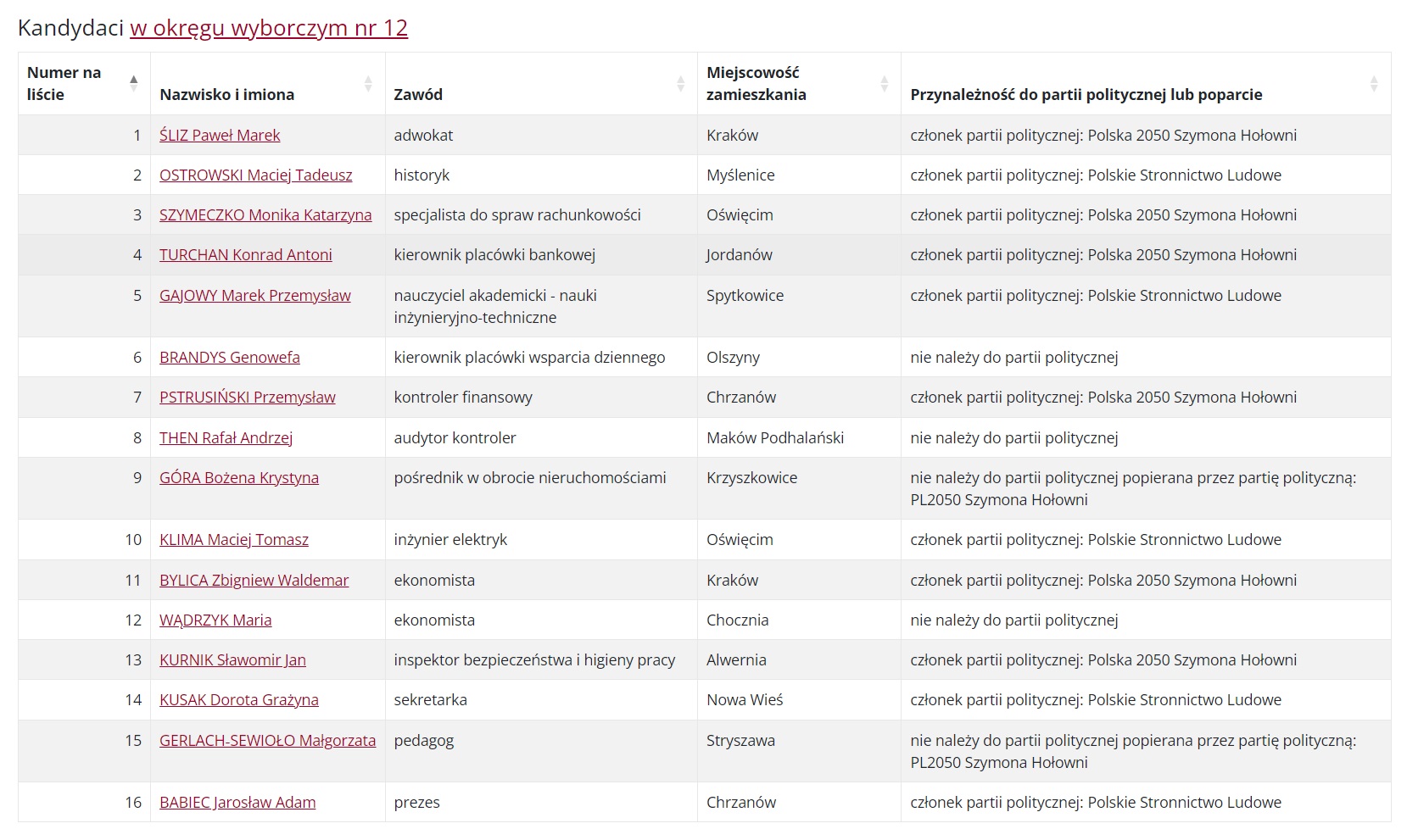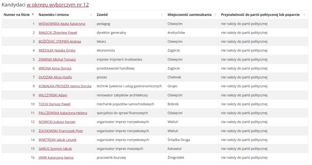 Zobacz kto kandyduje do Sejmu z okręgu wyborczego nr 12 (obszar powiatów: chrzanowski, myślenicki, oświęcimski, suski, wadowicki). Pełne listy nazwisk.