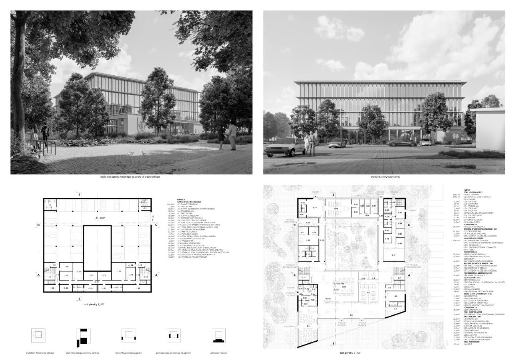 Nowy budynek ma być dobrze wkomponowany w otoczenie oraz logicznie skomunikowany z sąsiadującymi ulicami. Plac wejściowy i przyległy teren zielony stworzą atrakcyjną przestrzeń publiczną – połączenie parku i urzędu.