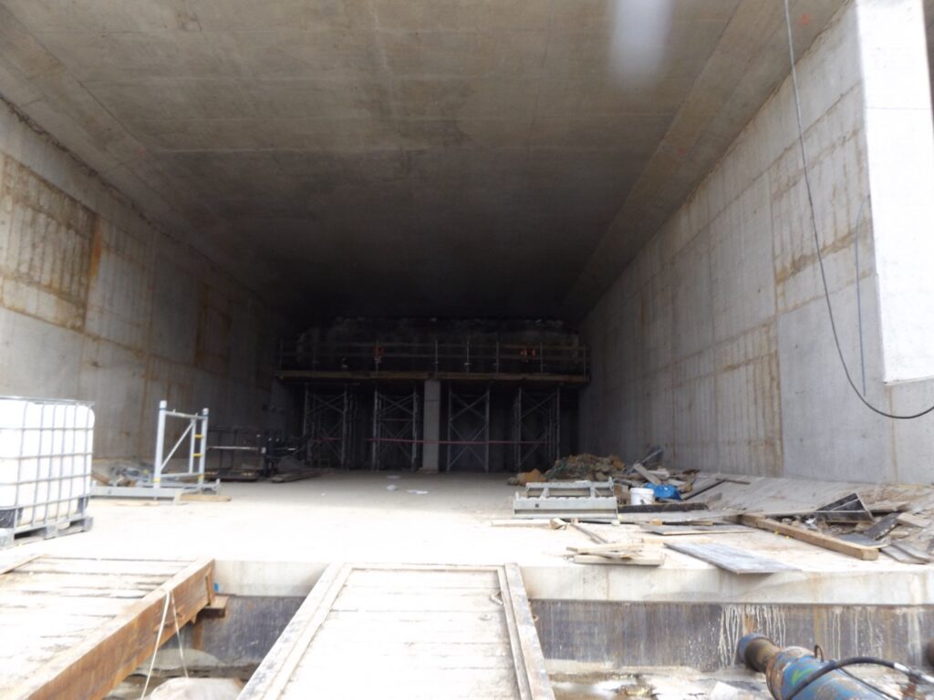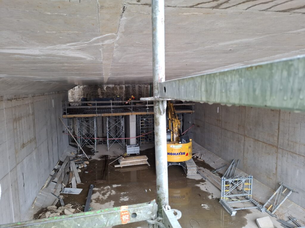 Dodatkowym utrudnieniem jest wysoki poziom wód gruntowych, dlatego zastosowano specjalne podziemne ściany zabezpieczające.