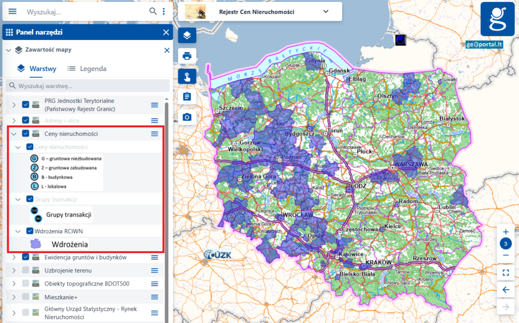 Główny Geodeta Kraju udostępnia w serwisie www.geoportal.gov.pl usługę Krajowa Integracja Cen Nieruchomości (KICN).