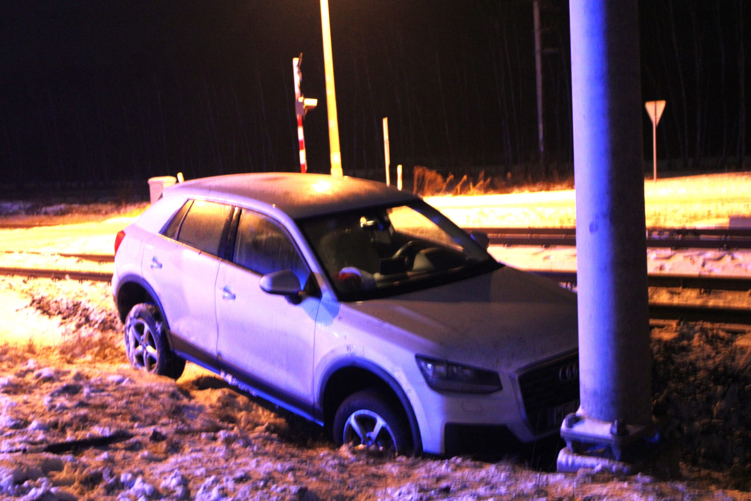 Nietrzeźwy kierowca uderzył w słup przy przejeździe kolejowym