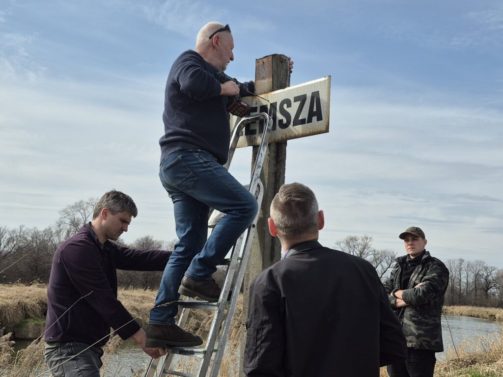 Rudyk pamięta znak z czasów dzieciństwa. W latach 80. nie było już po nim śladu – pozostał jedynie betonowy słup. W 2015 roku z jego inicjatywy wyprostowano chylący się słup i zamontowano nowe tablice. Środowa akcja była już trzecią od tamtego czasu.